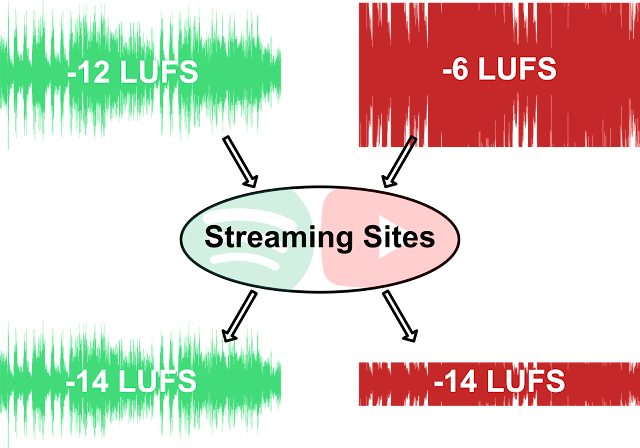 Spotify and Youtube stream audio at around -14 LUFS. If a track has a loudness level of -9.5 LUFS (like AC DC Back In Black) both streaming platforms will decrease the volume of that track to around -14 LUFS.
